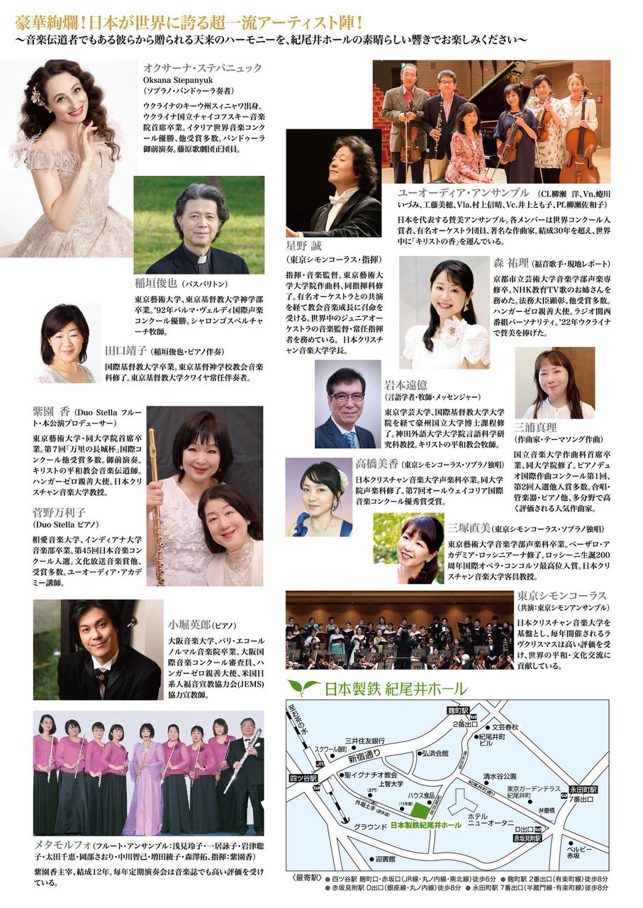 紀尾井ホールにてピースクラシック2025平和音楽祭を、満場のお客様をお迎えして捧げることができました。主催いのちのことば社ライフクリエーションから依頼され、プロデューサーを務めさせて頂きました。