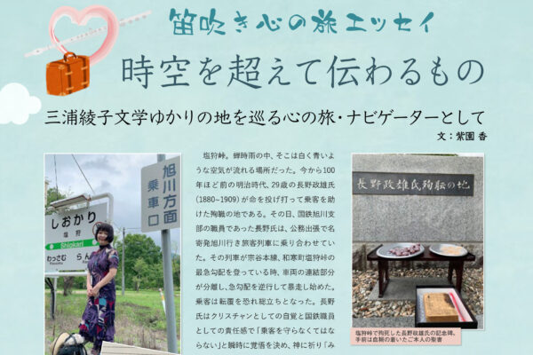THE FLUTE vol.208 (2025年)「笛吹き心の旅エッセイ」掲載『時空を超えて伝わるもの』三浦綾子文学ゆかりの地を巡る心の旅・ナビゲーターとして 文:紫園 香続きは本誌でご覧ください。